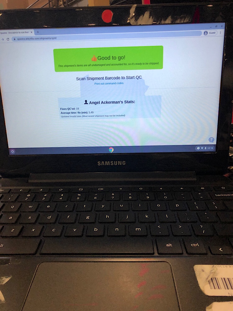 9:57 am— I ask a supervisor for clarification on what BA is. She scowls and looks me up on her computer, “Line 2, EIGHT A.” And she points to Valley 1. I refrain from telling her that Stitch Fix needs a easier to read typeface.