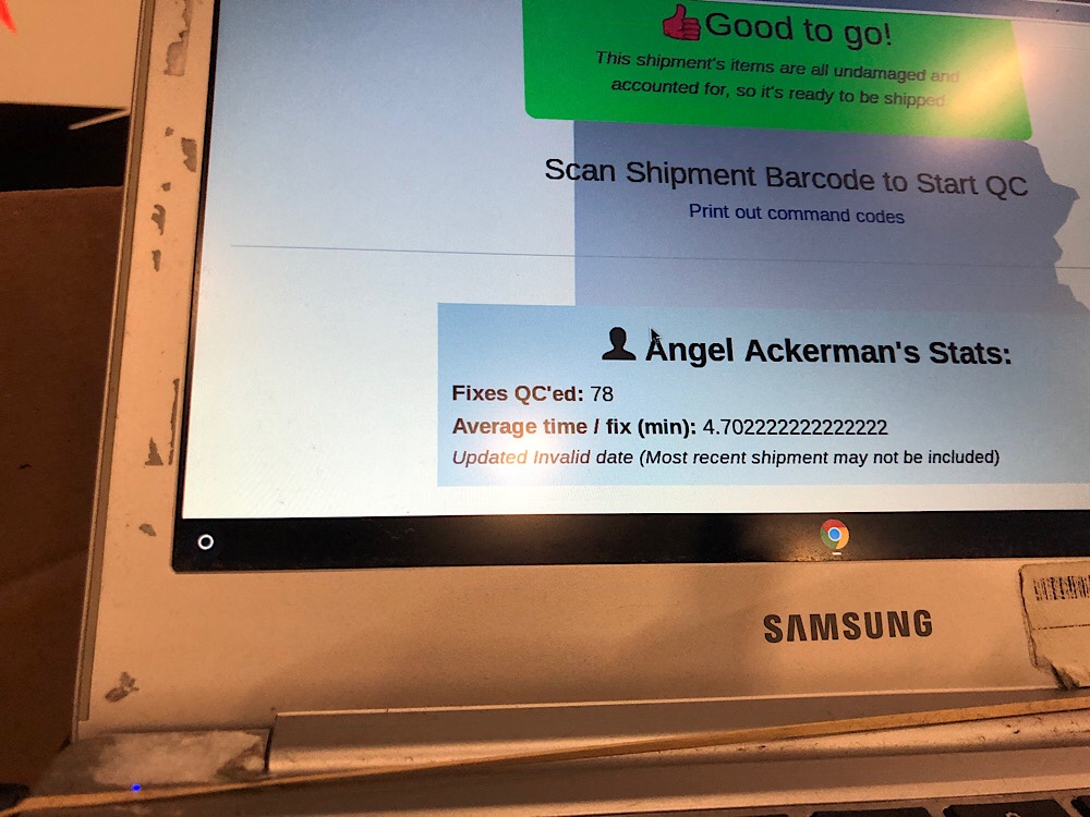 And I felt energized, excited, and good at my job. I decided not to obsess over the numbers and just work as hard as I could and see where the numbers fell. That didn’t work. By the end of the night I had my worst night ever— I QC’ed 78 fixes.