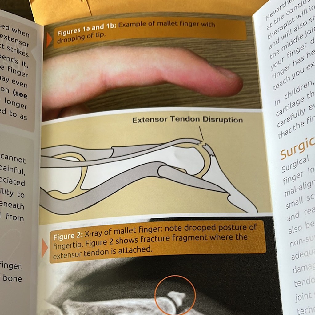 The doctor seemed a little perplexed that I broke my “middle phalanx” of my pinky falling down seven cement steps. They expected more damage. What can I say? I have skills. And that friend I mentioned above? She broke several ribs falling down the stairs in her house and ended up as an inpatient in the hospital so she’s jealous right now.