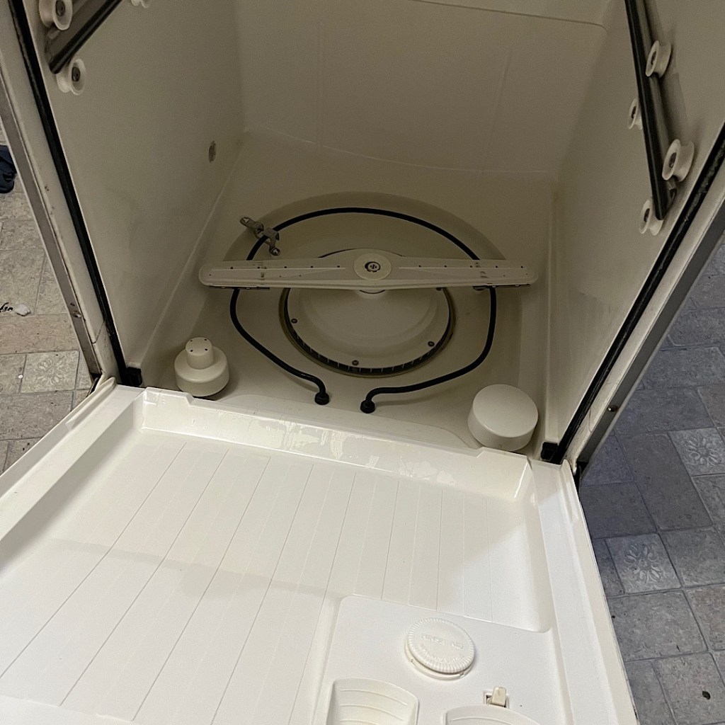 The teenager watched about half a minute, grabbed a bucket and ran to the front access panel. Within seconds, she had removed the whole plug apparatus and flooded the bathroom with gallons of wash water.