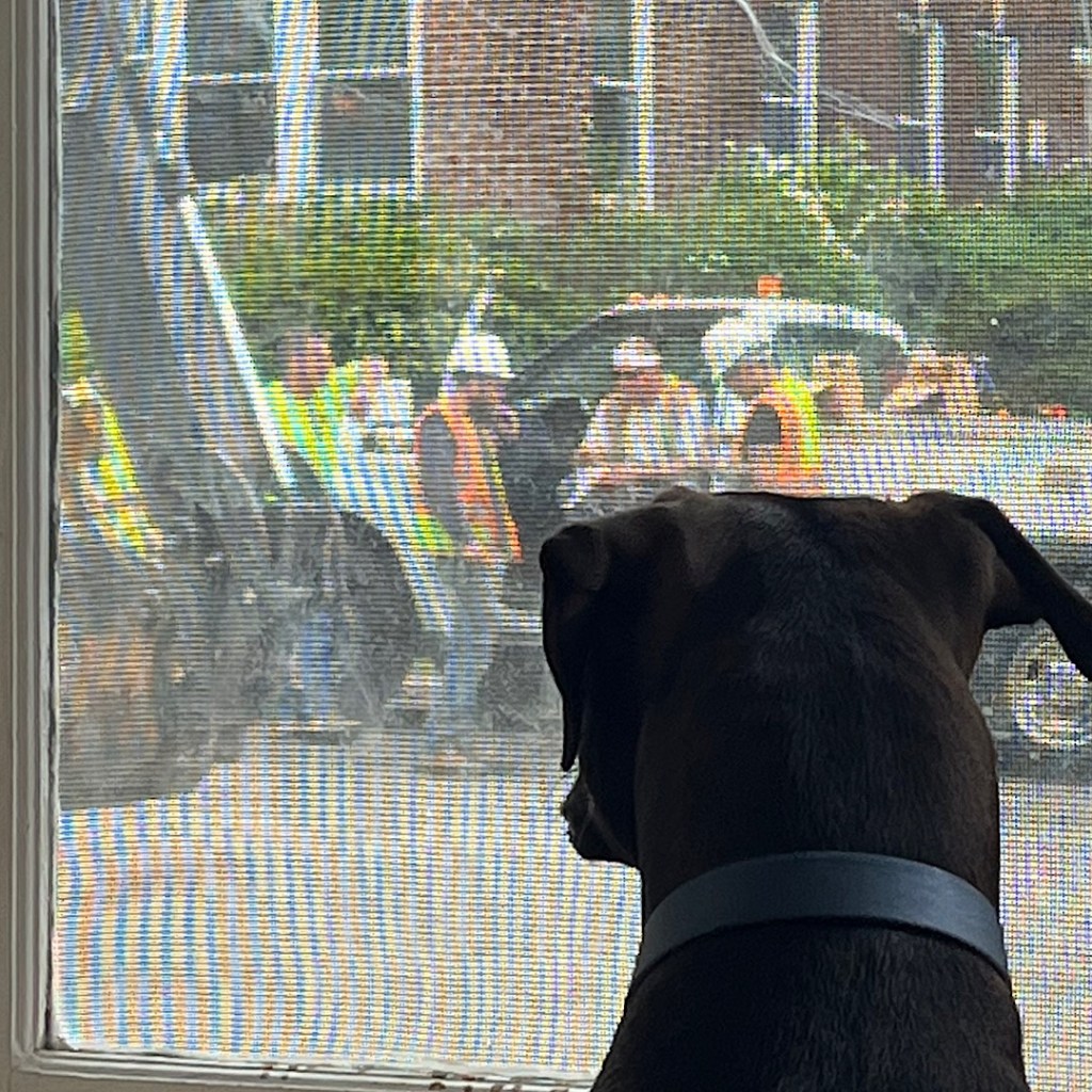 Came home and the dog came out just in time to see that the paving crew had Taco Bell for lunch.