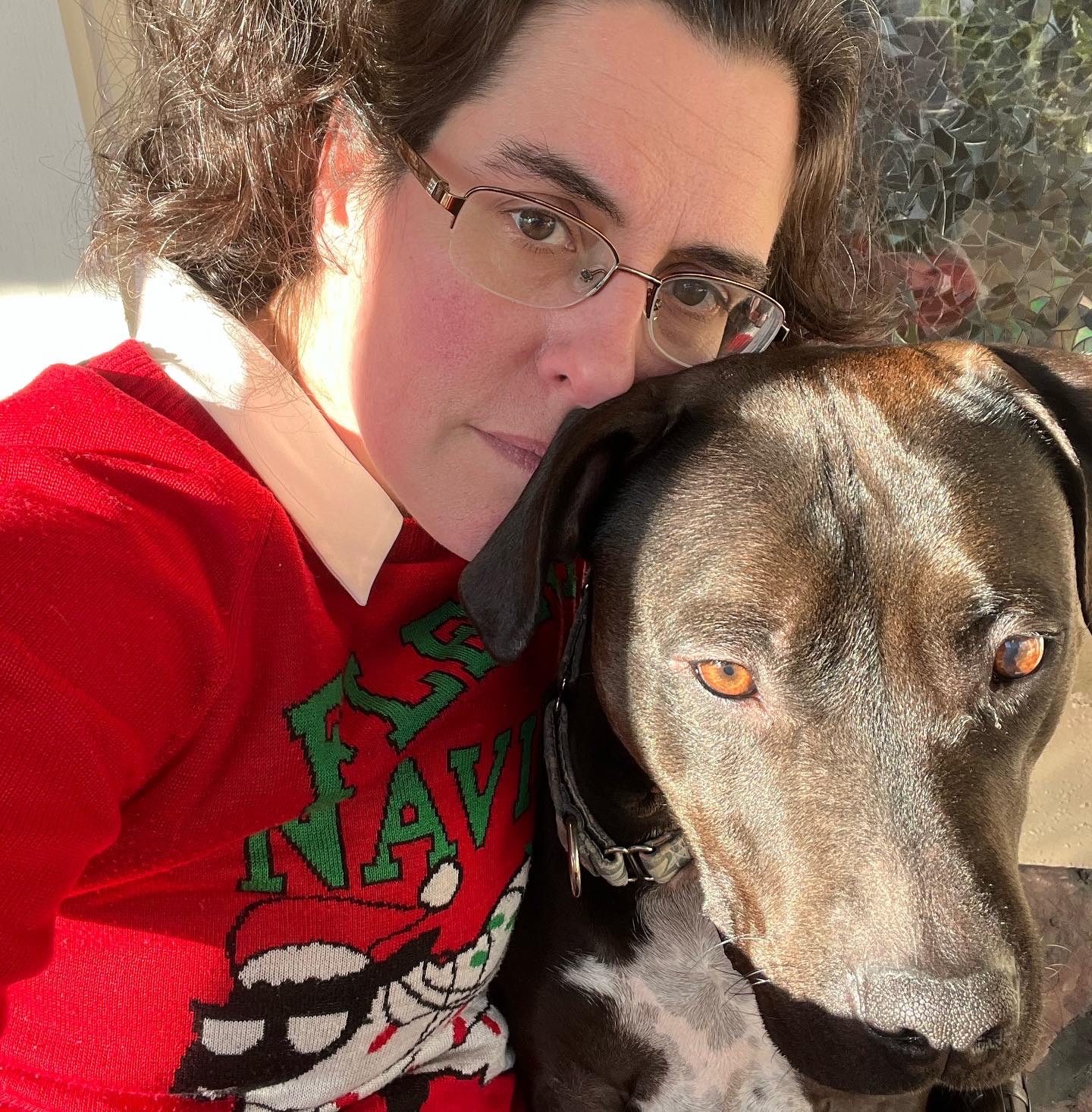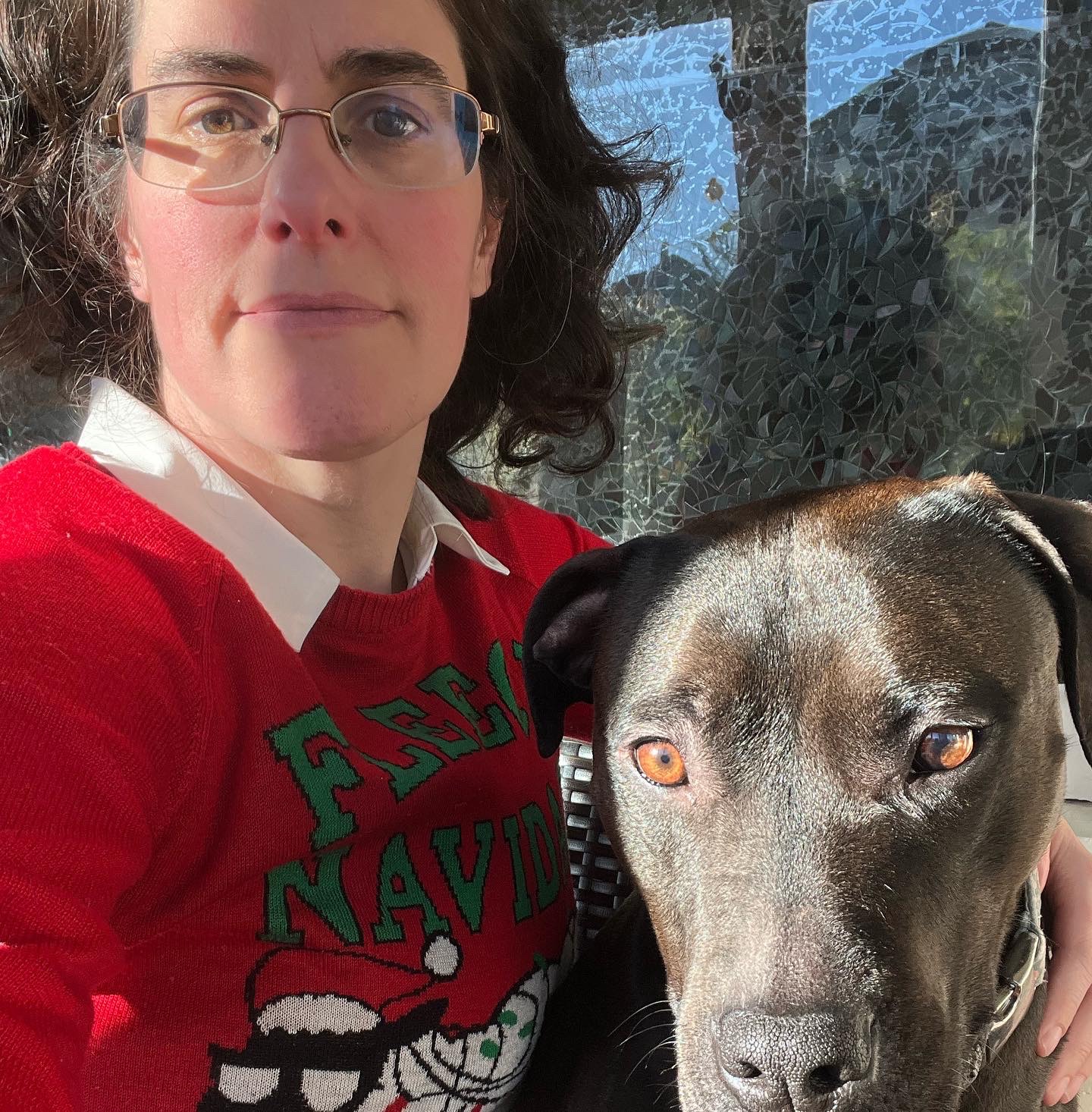 I had an hour between appointments and in that time, I hung out with The Teenager’s dog (F. Bean Barker). It was Festive Friday at work so I wore my favorite “Fleece Navidad” Christmas sweater.