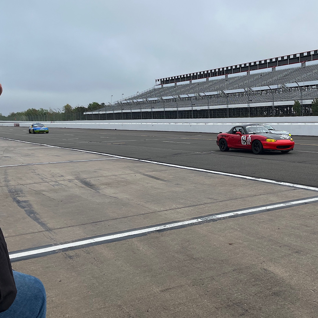 Once we found Bob and Erica up at Pocono, we settled in for our first class, Ford spec. Next came I believe a GT Lite class. Then the little min-formula one type cars with the small engines. The last class we saw was the Miata spec class, with three Minis and a Chevy Aveo sharing the track with them.