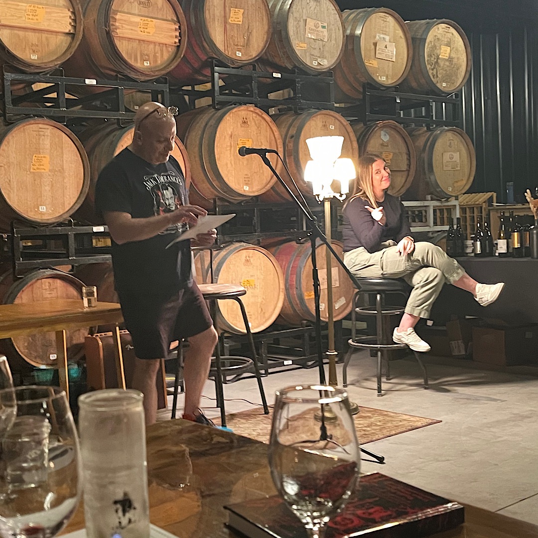 Last night, I had the pleasure of accompanying Darrell Parry and William D. Prystauk to a reading at Cellar Beast Winehouse in Andreas, Pa., not that far from where I had breakfast at Bowmanstown Diner earlier this week (in the Palmerton/Lehighton/ Carbon County region). We joined Liz Rosen and JZ Nieves as part of a book-and-wine pairing event that celebrated this unique winehouse as well as our writing.
