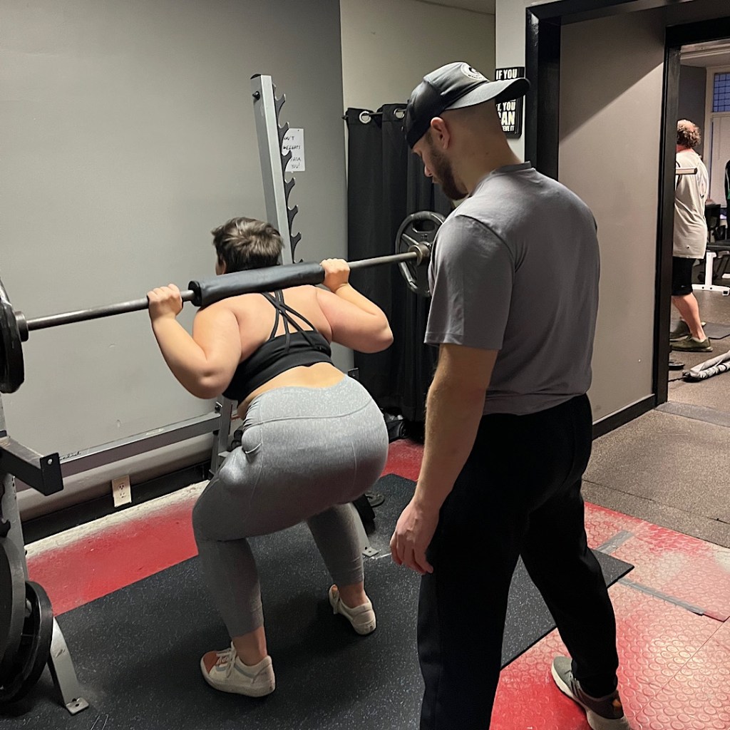 This morning, the teenager and I met up with Dan at Apex training and I did some lower body while Dan taught the teen to do barbell squats. He started by giving her the bar and evaluating her form and then he gave her some weight.