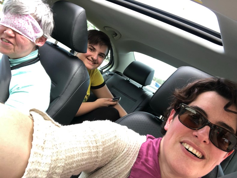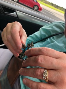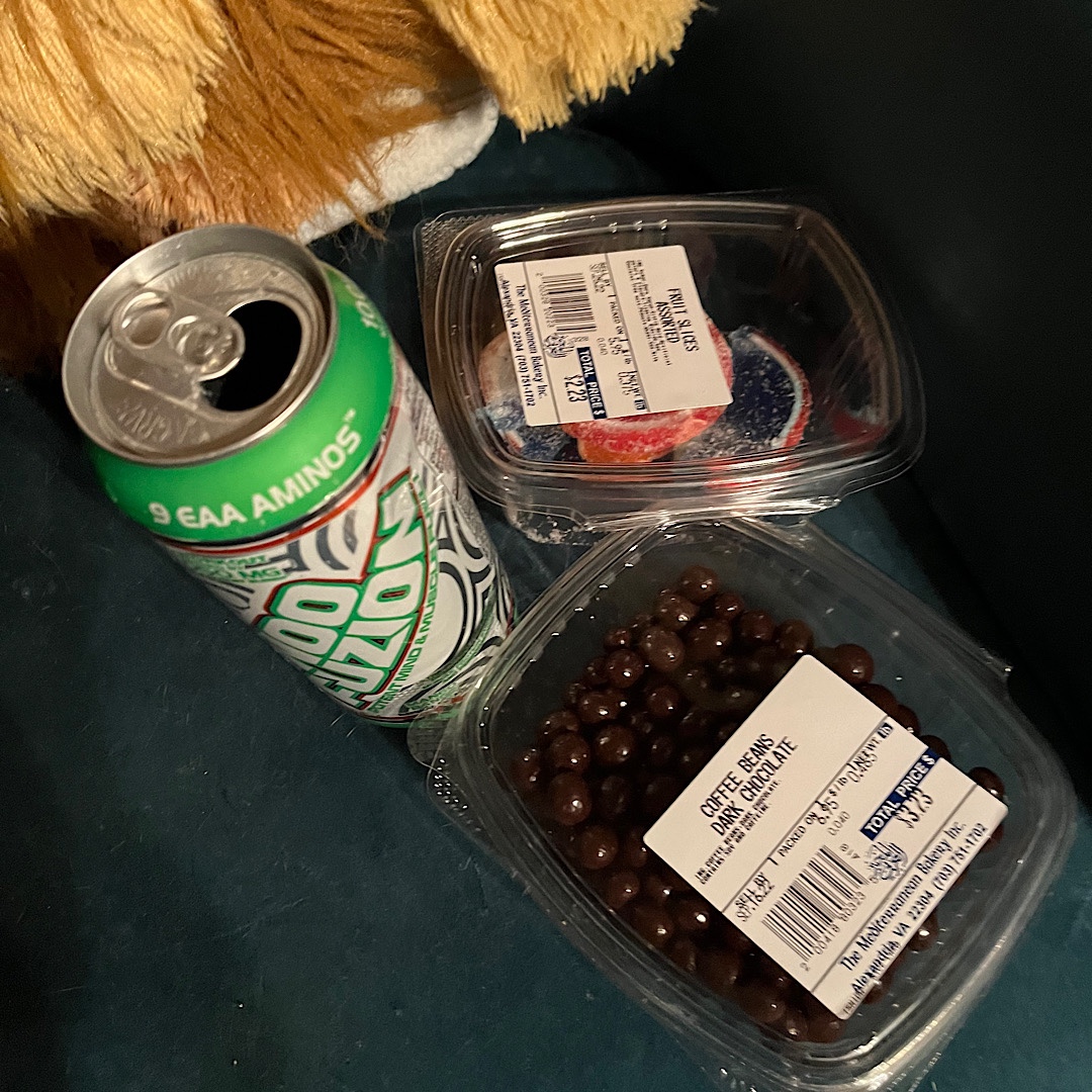 At 7:45, my alarm goes off. I clean cat boxes, feed the birds, check food bowls, get dressed and leave the house by 8:15. I stop at Dunkin to grab a cold brew and try the new peanut butter cup flavor. They screwed up and gave me pumpkin. The teenager had purchased me candy — so I had Haribo berries for breakfast/ road trip fuel.