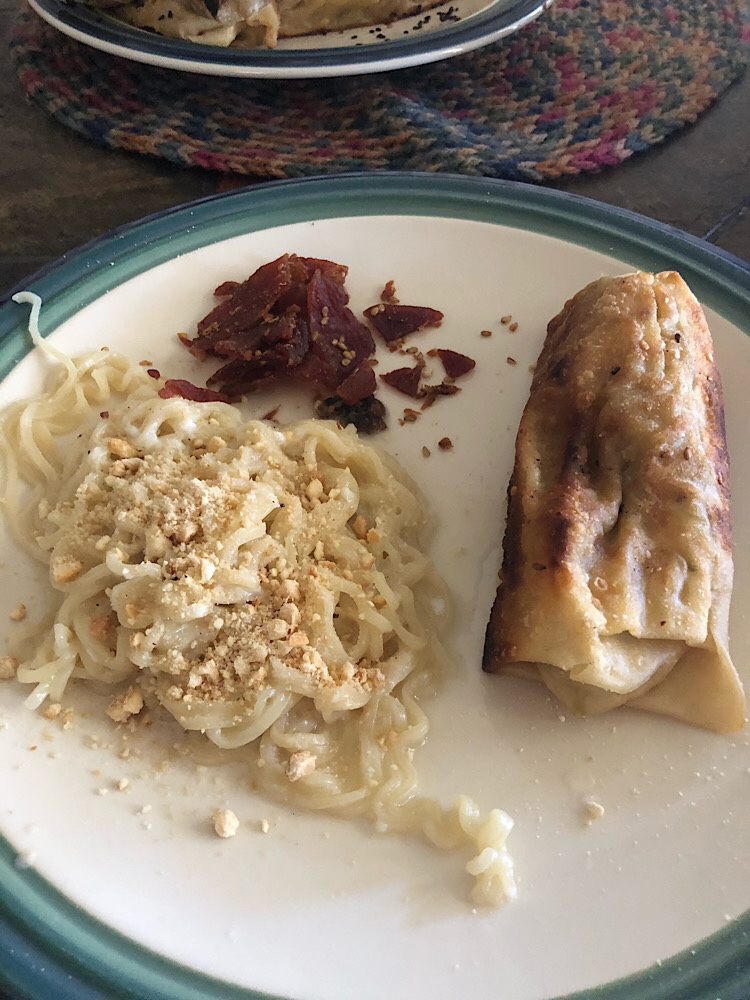 I casually walk through the store explaining every item I see, from snack items to spices to peanut butter in squeeze tubes and olives in plastic snack cups. I love food and I love weird so this is why Nan and I consider grocery shopping fun.