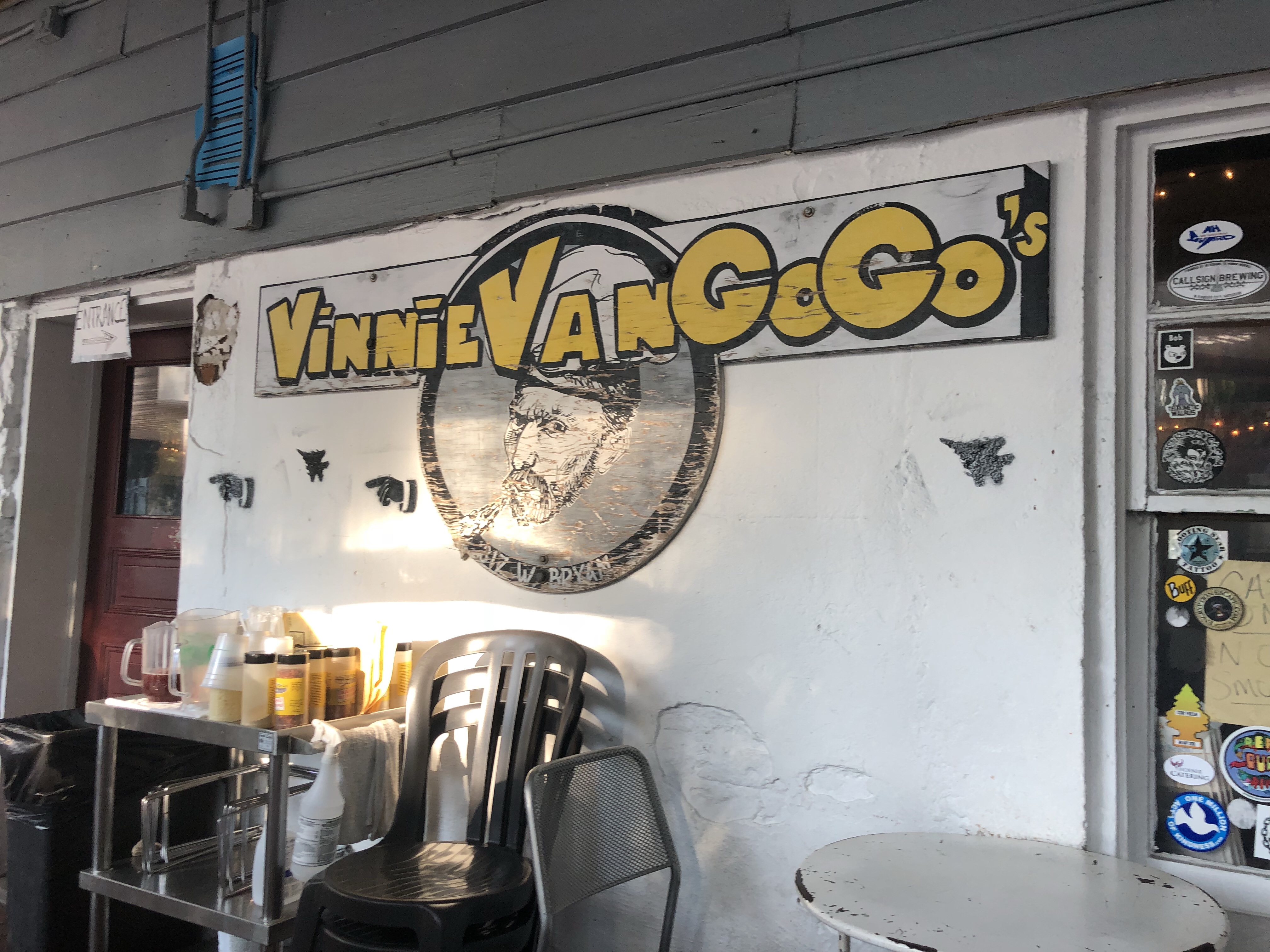 Last night we went downtown and ended up getting New York pizza got dinner at Vinnie Van GoGos. Wonderful artsy pun. I had a local blonde beer: Tybee Isle Blonde.