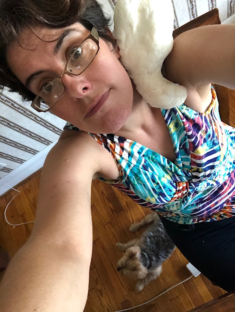 As I’m sitting here, my Goffin’s cockatoo is grooming me, and I’m trying to get her to trim my hangnail. She’s really good at hangnails and splinters. If you never heard the story of the raisin that fixed my gait and how Nala the Goffin removed my splinter, you can read that story here.