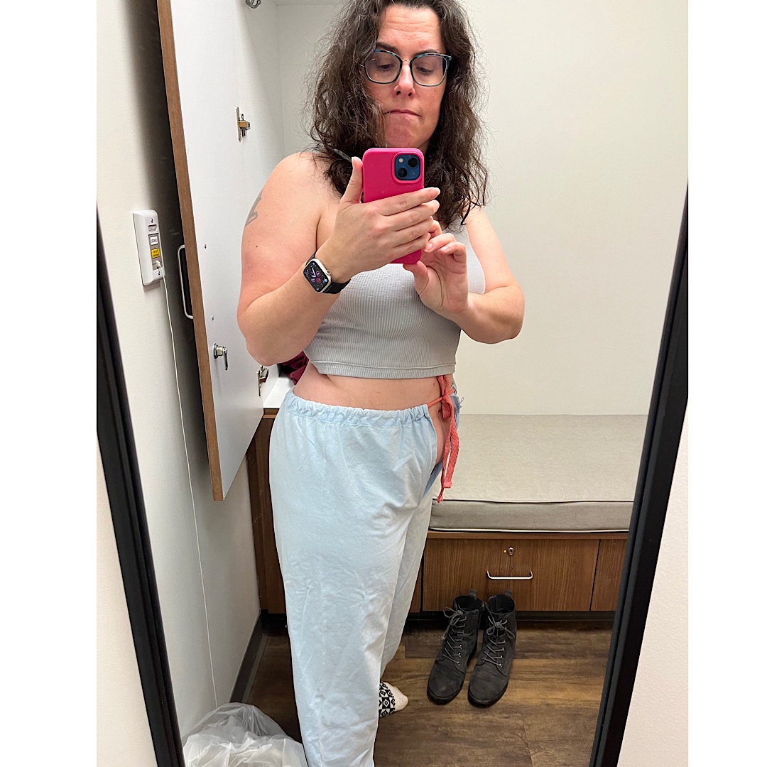 The Angel in the pictures is 45 pounds lighter than me, and I think those 45 pounds, age and stress have had a ridiculous impact on my blood pressure and my mobility. (And for the record– the sweatpants worn by Angel in the pictures were my favorite sweatpants ever.)