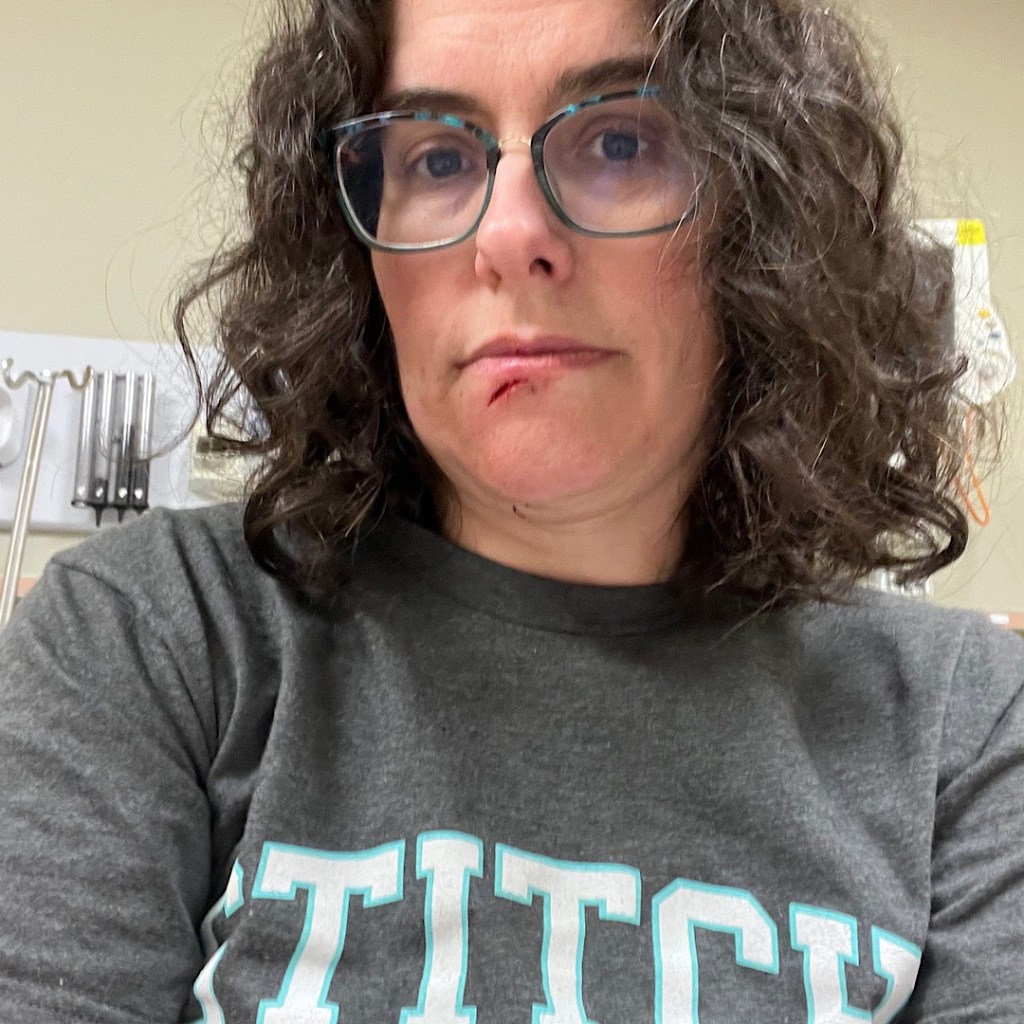 I got three stitches, and he did a nice job. Not that I have a whole lot of experience. I’ve only had stitches once before.