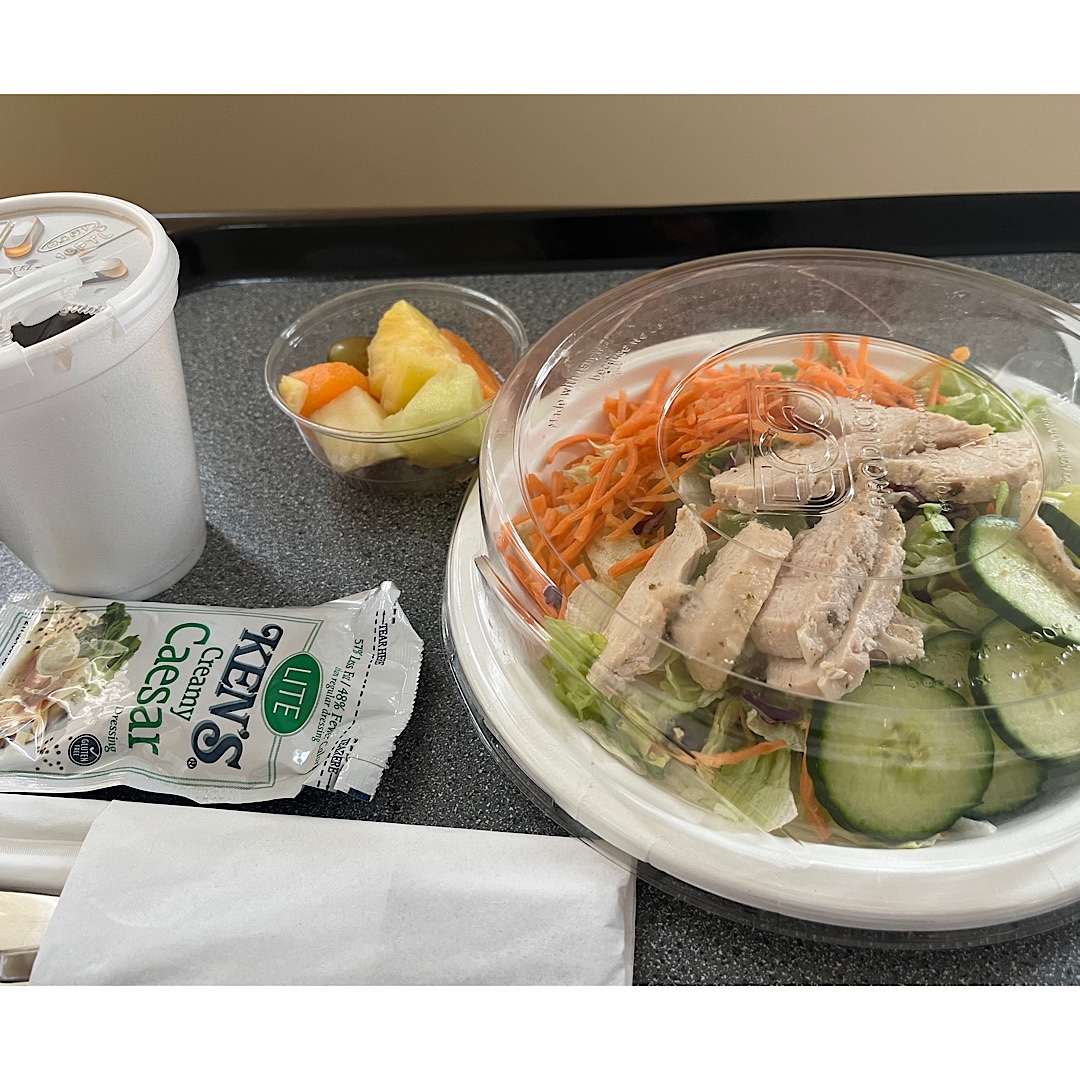I was able to order my own lunch, but even though I ordered the entree salad, I got something much blander. But compared to breakfast it was delicious.