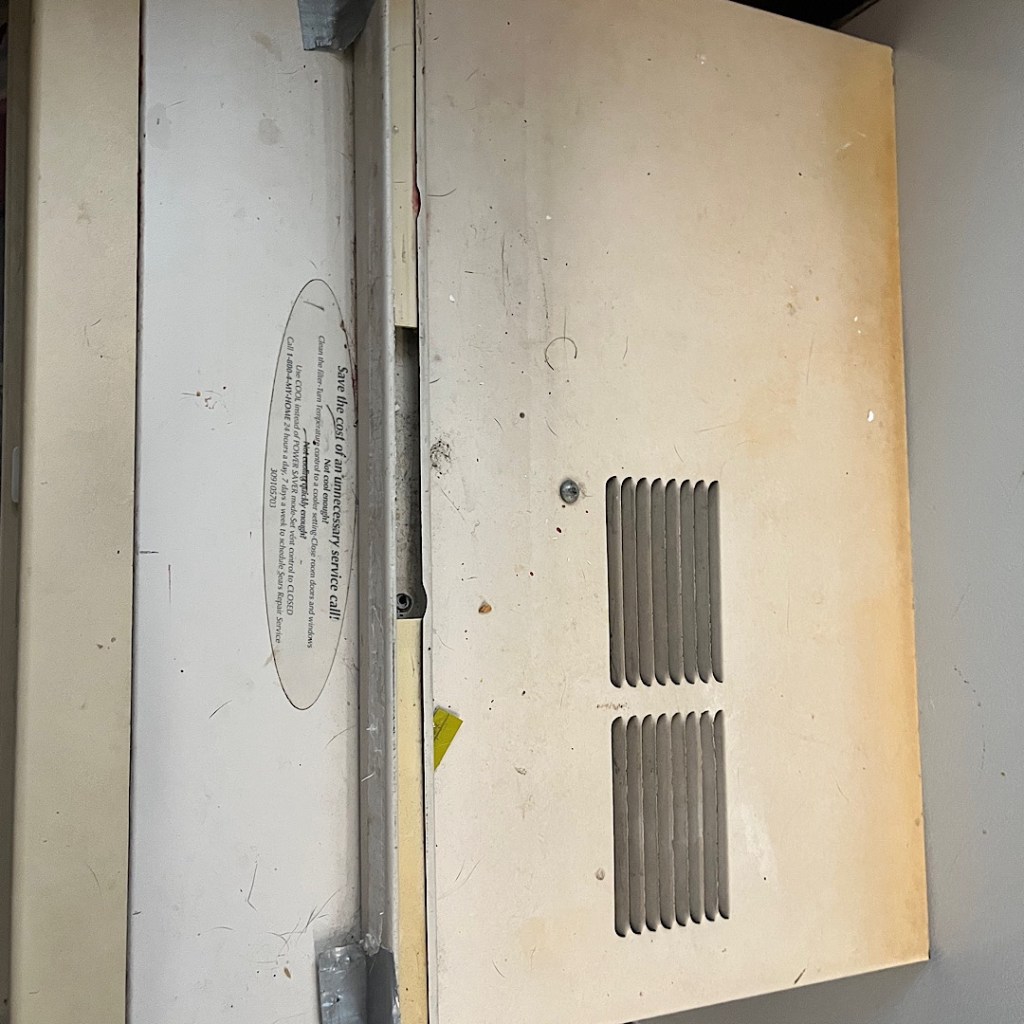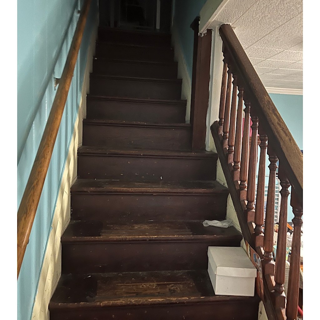 I made a sound and started dropping f-bombs as I cascaded, according to the Teenager, sideways then straight out and dropped at a ninety degree angle onto the air conditioner. The Teenager ran to me. The air conditioner knocked the wind out of me, seriously knocked the wind out of me and now judging the bruise on my back it might have been a kidney punch from the stairs. I slowly rose and sat on the bottom step.