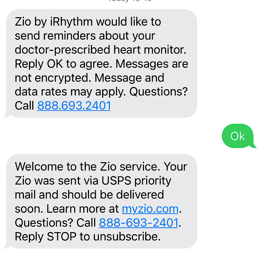 The manufacturer of the Zio sent a push notification to my phone that they received my device and will have the data to my doctor soon.