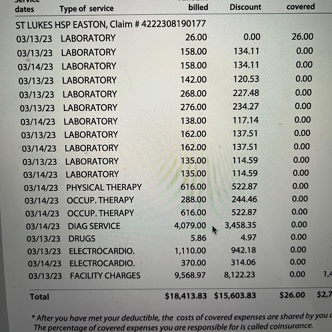 In a similar fashion– the medical office billed the insurance company for the resident who so patiently spent 30 minutes removing three stitches from my face. It was itemized as “surgery” and the provider billed $66, of which the insurance company paid $13. And left $1.50 for me. So this poor resident, who worked her way through medical school and had to dig the stitches out of my scabby face, isn’t even worth $30/hour?
