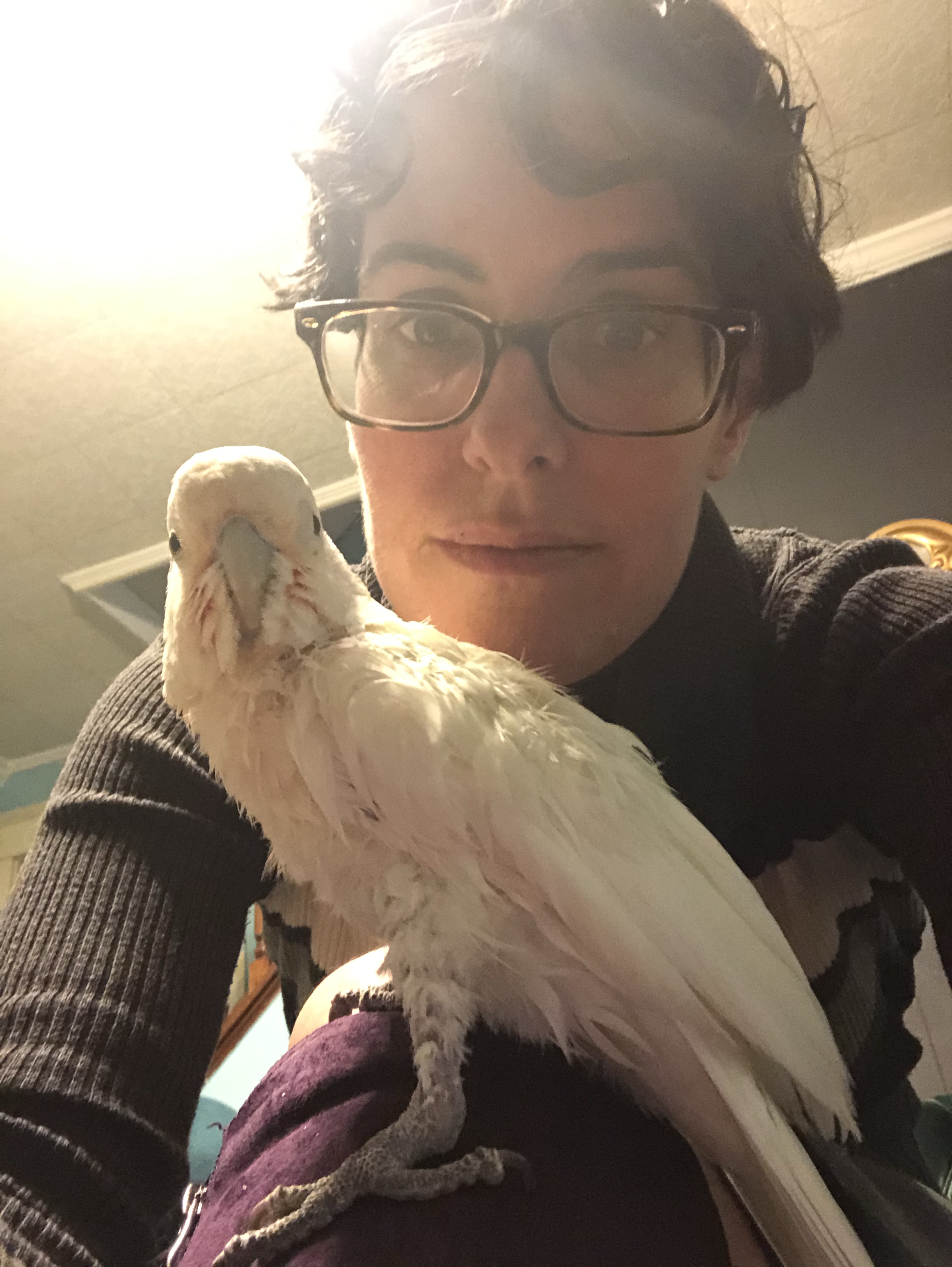 The staff person said they had a boy who was a bird whisperer and he couldn’t get anywhere with her. I took that as my solace and my consolation. Then the staff member added, “but she really seems to like you.”