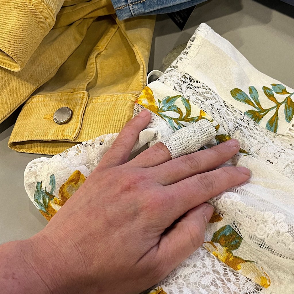 I worked with my hand like that for a week at the Bizzy Hizzy folding clothes for Stitch Fix’s clients, performing at a solid 90%. But… I realized I rely on my left side for balance and stability and using my right side to do everything exacerbated problems I was already having with my right hip and spine as complications of my lifelong battle with cerebral palsy. That has been another journey of mine— learning about my body and how I can work with it to age well.