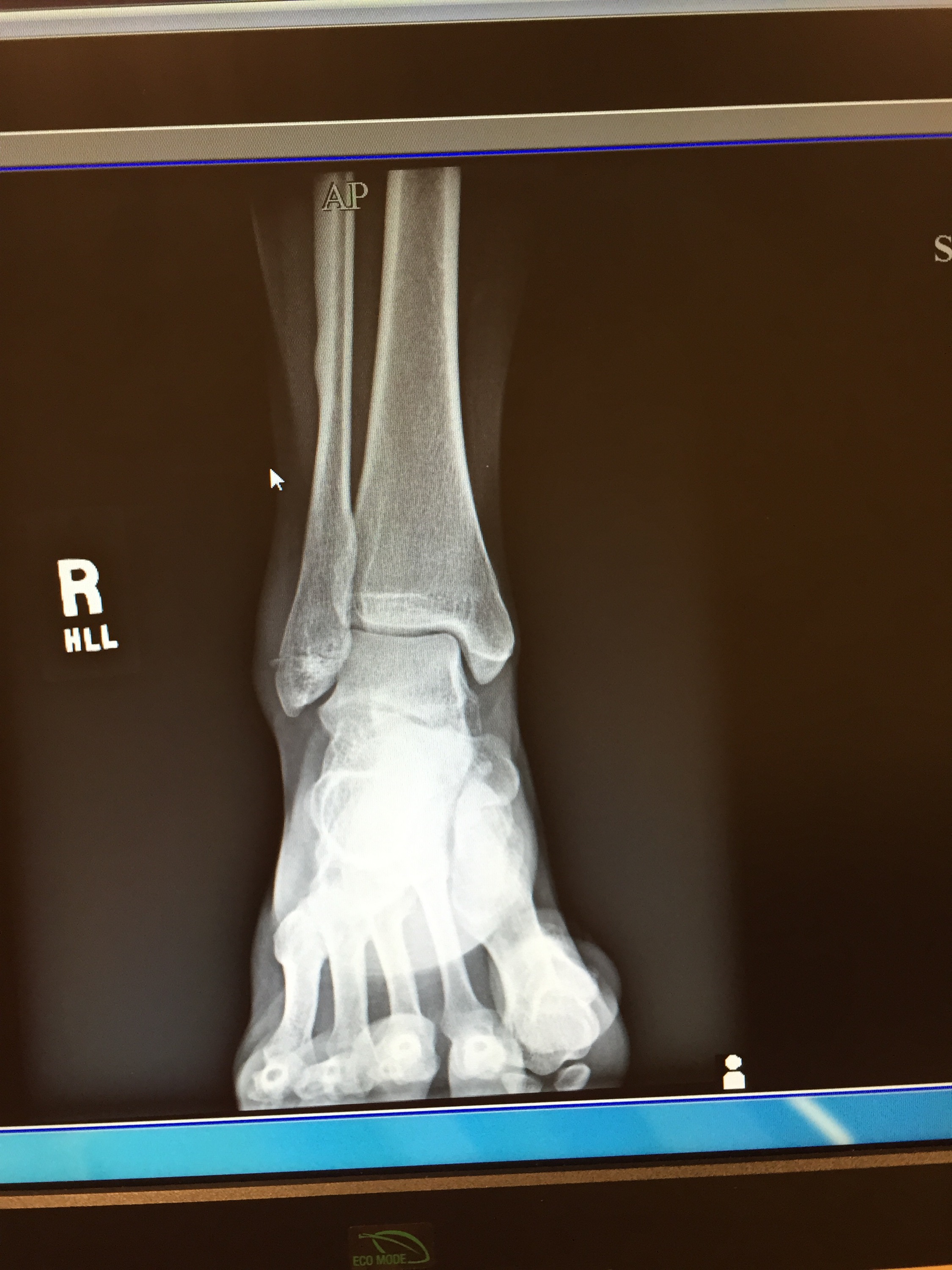 Turns out I had a closed lateral fracture of the malleolous. Or a broken angle. Imagine a horizontal crack across the bottom of my fibula in the front of my leg.