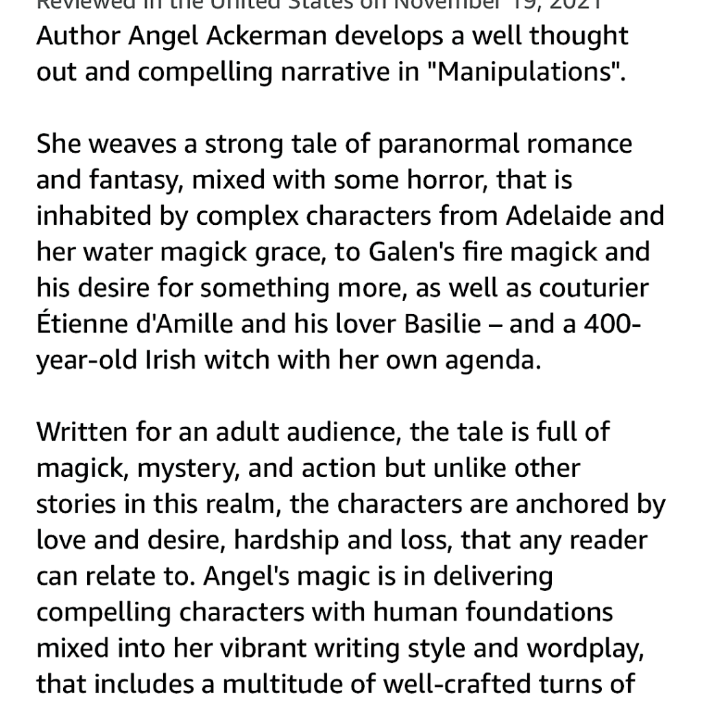 Manipulations, at its core, is a book about building healthy relationships. And the proverbial lesson of “things are not always what they appear.” And I hope my readers will understand that magic, in this context, allows us to explore domestic violence.