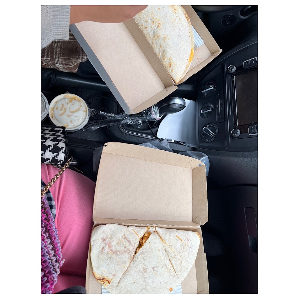 We came home and shared some Little Caesars pizza as I was craving their “pizza and sticks” pie. We even shared with the dog.