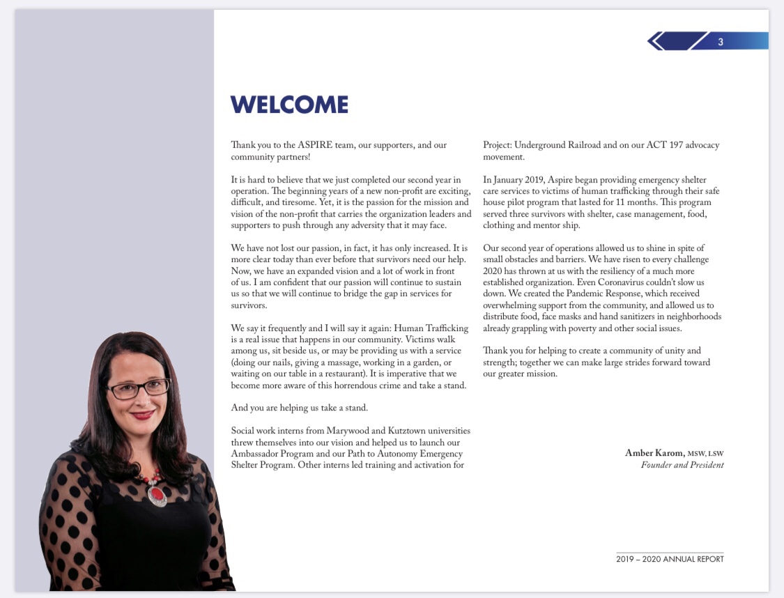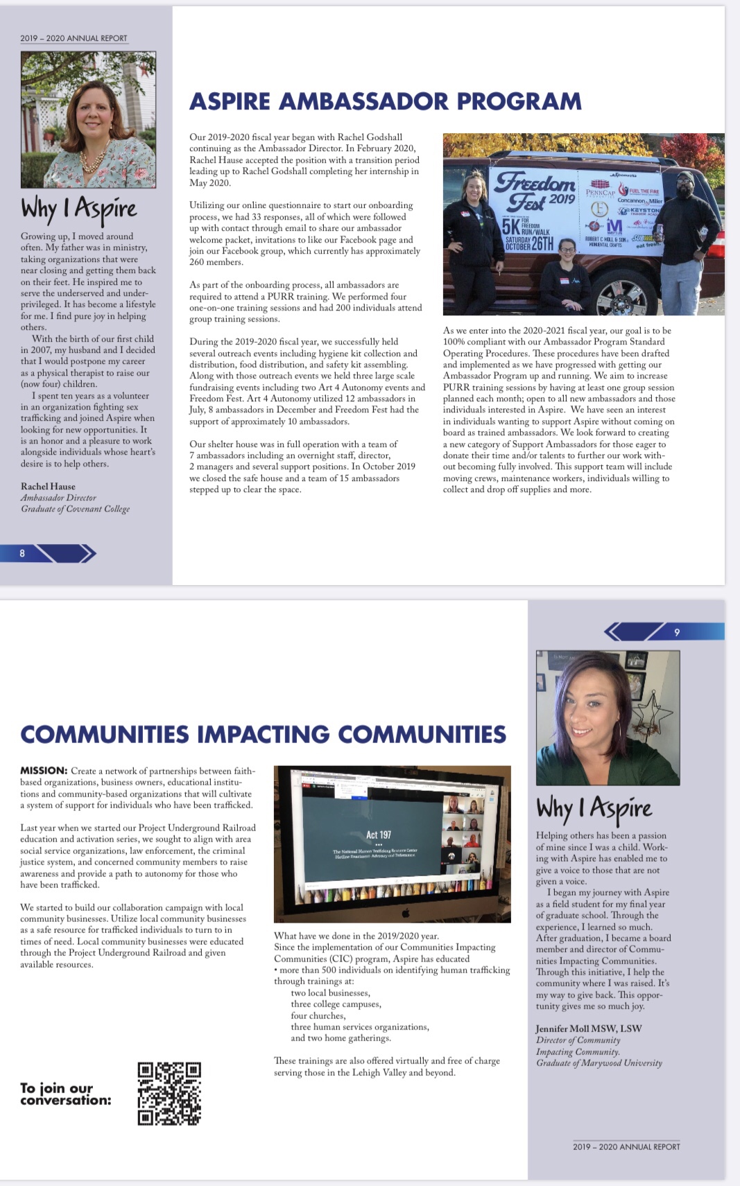 We made the very deliberate choice to go landscape layout instead of portrait and to highlight our team and finances in fun and informal ways to show the grassroots, community-oriented “real people” side of the organization.